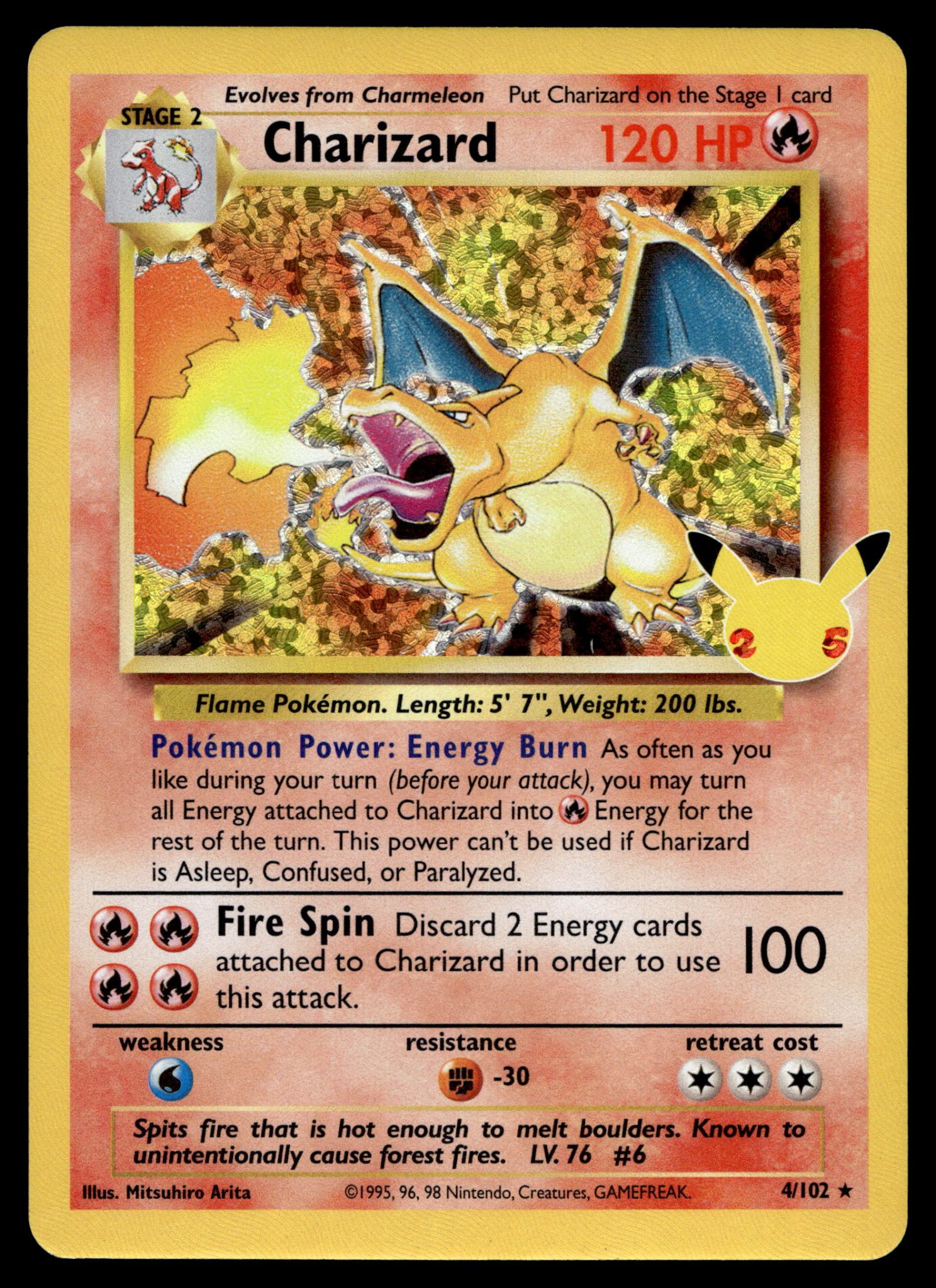 Get yourself this, Charizard – 4/102 – NM – Holo – Celebrations – Pokemon – A6-44, an amazing raw near mint card at an affordbale price.