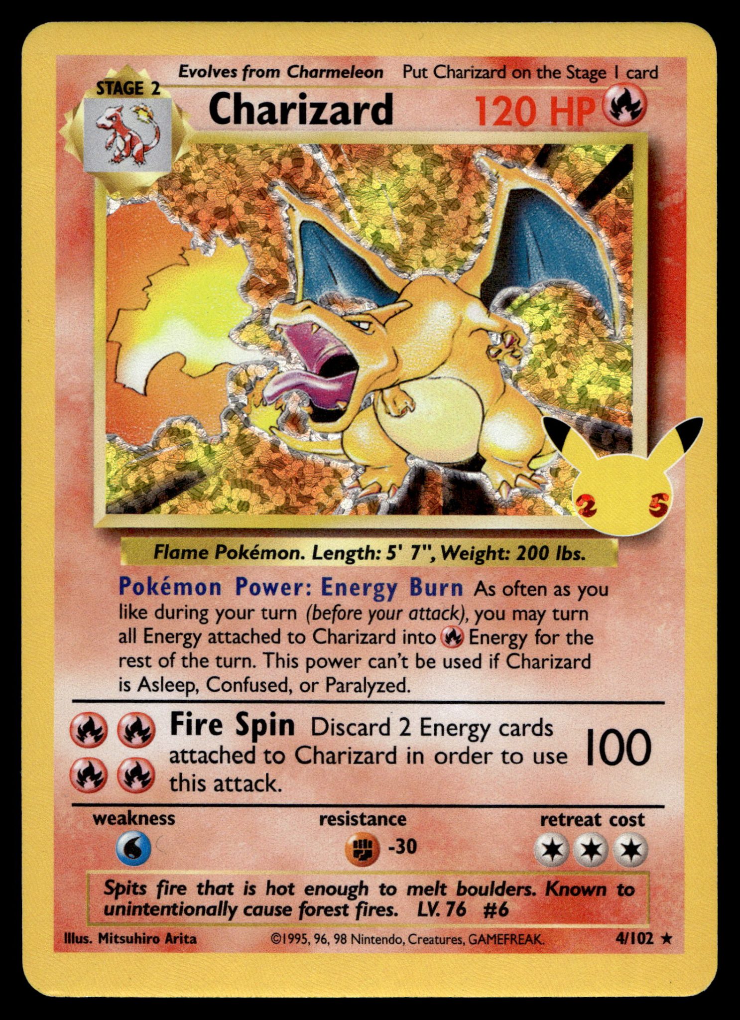 Get yourself this, Charizard – 4/102 – NM – Holo – Celebrations – Pokemon – A6-54, an amazing raw near mint card at an affordbale price.