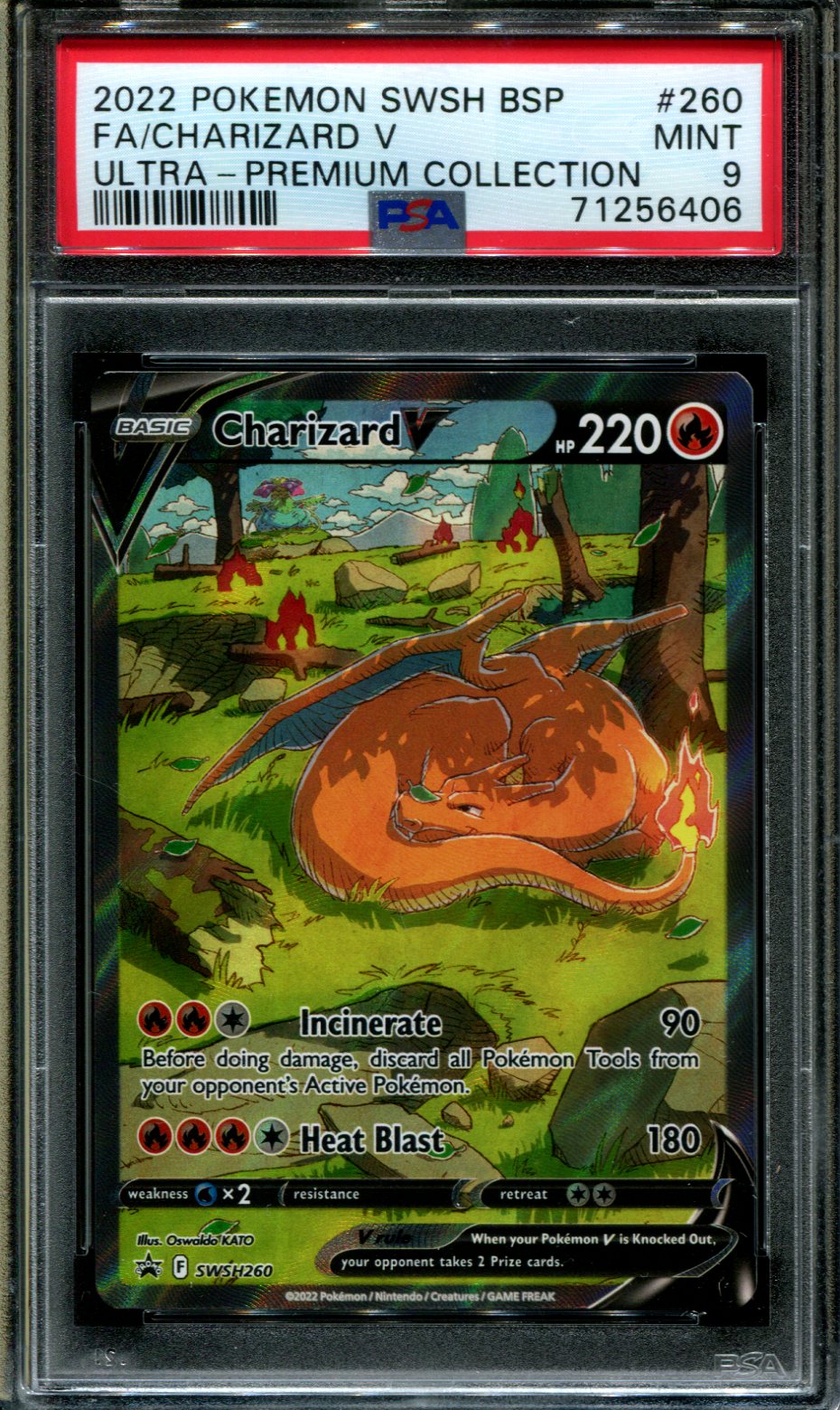Get yourself this, Charizard V – SWSH260 – PSA 9 – Alternate Art – Black Star Promo – Pokemon – 56406, an amazing PSA Graded card at an affordbale pri