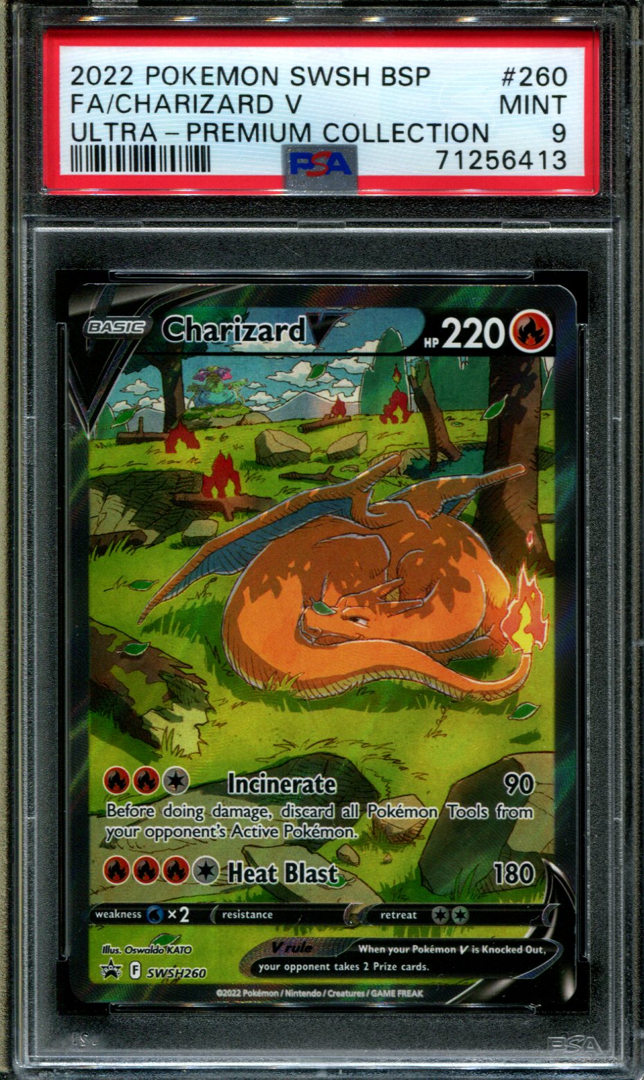 Get yourself this, Charizard V – SWSH260 – PSA 9 – Alternate Art – Black Star Promo – Pokemon – 56413, an amazing PSA Graded card at an affordbale pri