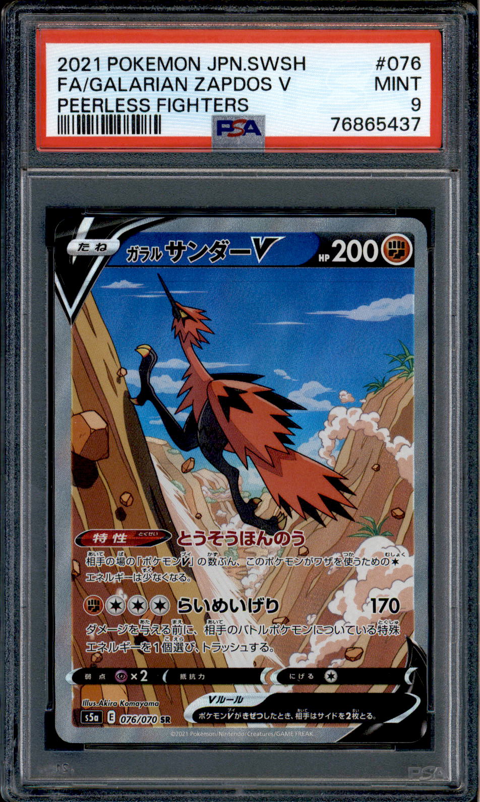Galarian Zapdos V – 076/070 – PSA 9 – SR – Alt Art – Peerless Fighters – Pokemon – 65437