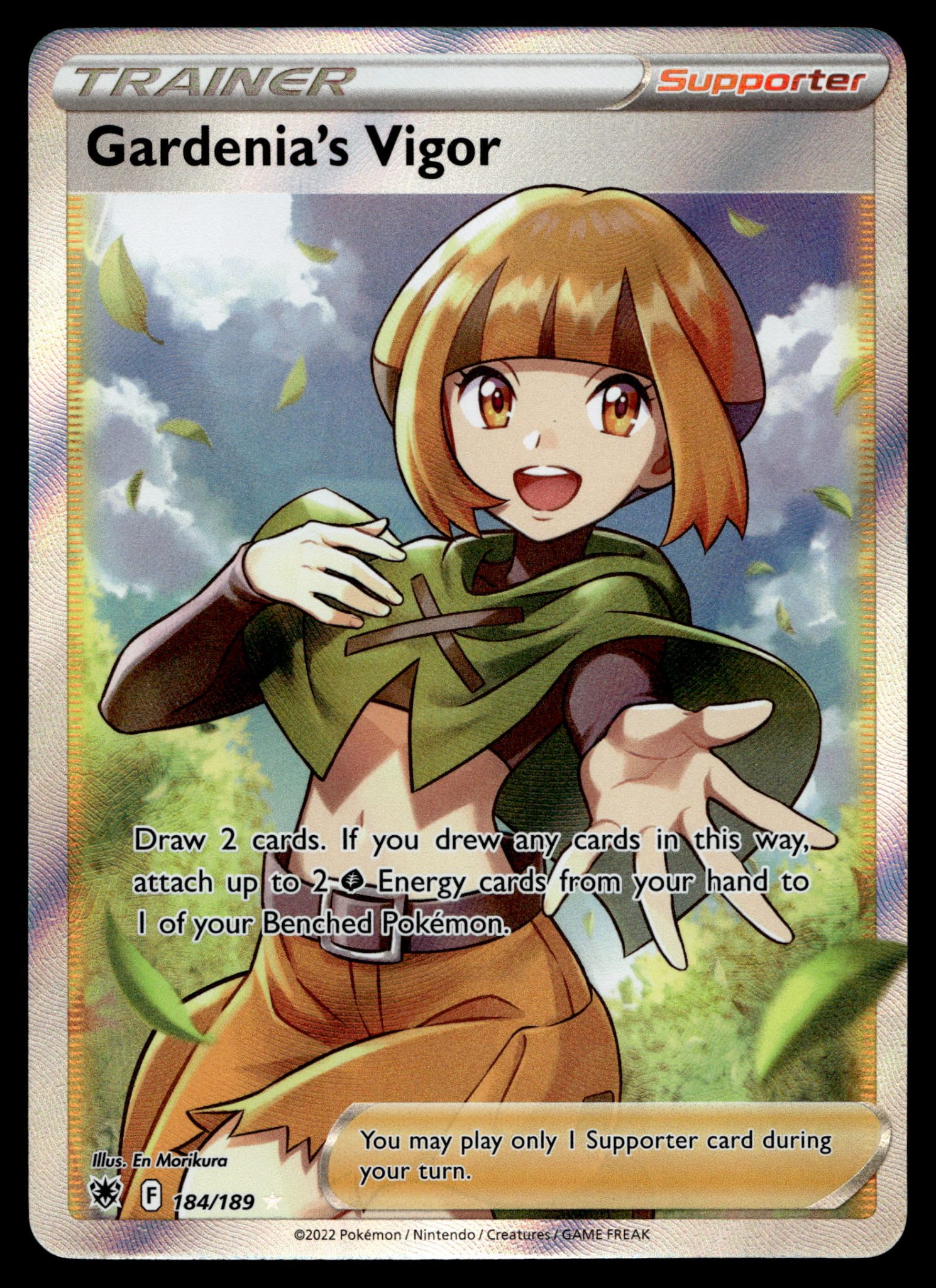 Get yourself this, Gardenia’s Vigor – 184/189 – NM – Full Art – Astral Radiance – Pokemon – A5-22, an amazing raw near mint card at an affordbale price.