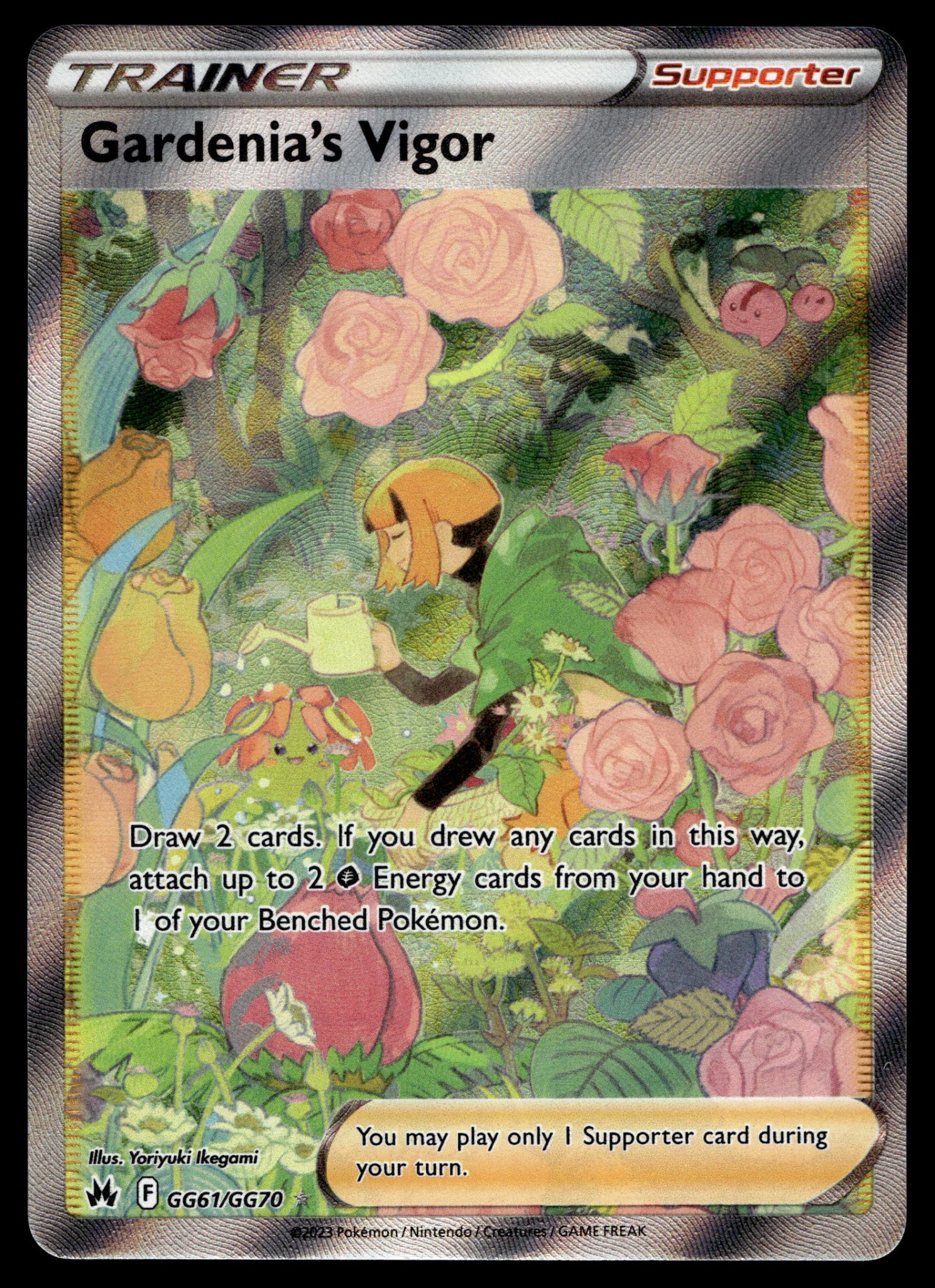 Get yourself this, Gardenia’s Vigor – GG61/GG70 – NM – Full Art – Crown Zenith – Pokemon – C2-14, an amazing raw near mint card at an affordbale price.