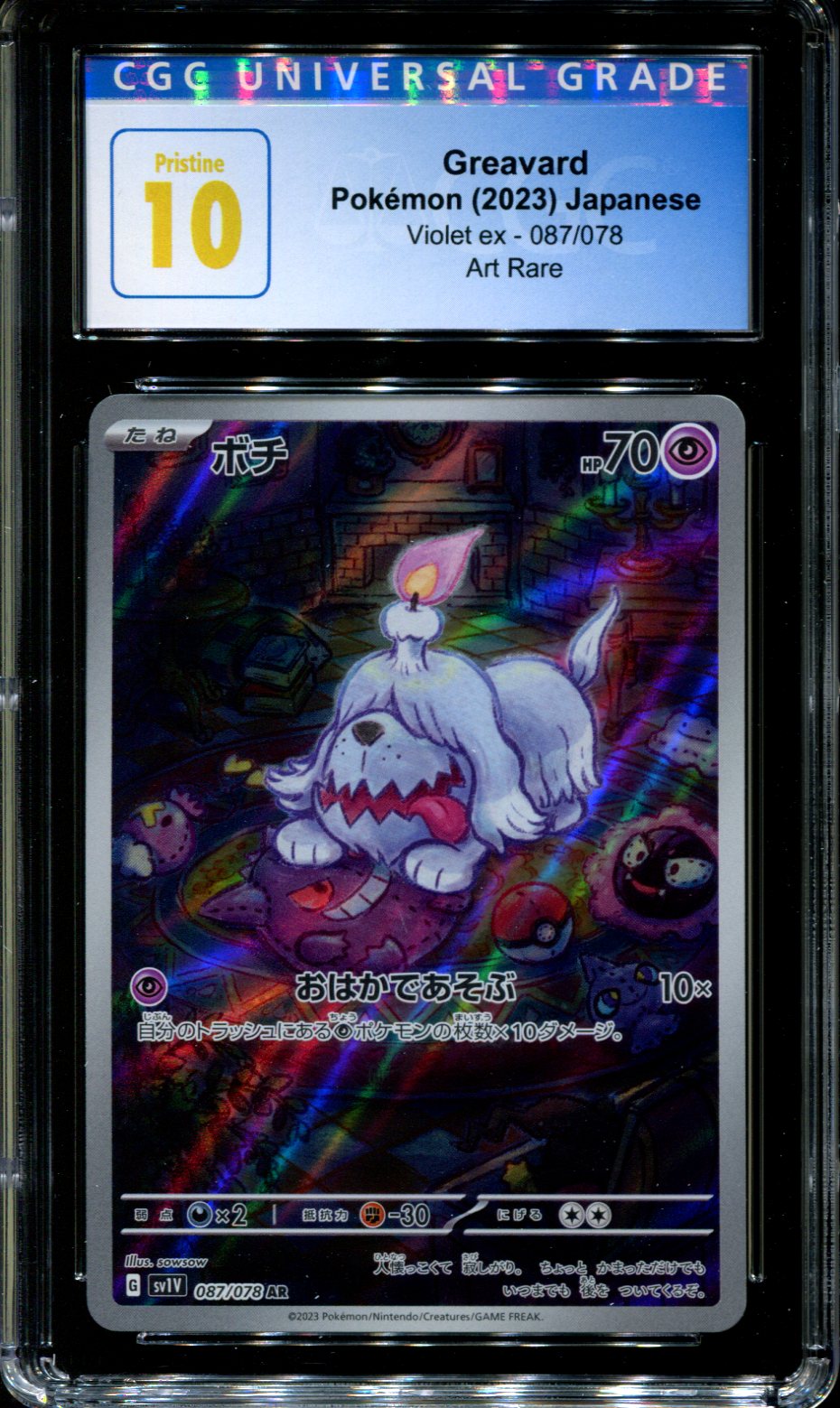 Get yourself this, Greavard – 087/078 – CGC 10 – Art Rare – Violet ex – Pokemon – 58258, an amazing CGC Graded card at an affordbale price. CGC is a professional grading company that specializes in authenticating and grading your trading and sports cards. Cards are graded on a scale of 1-10 using a tamper proof case to protect them.