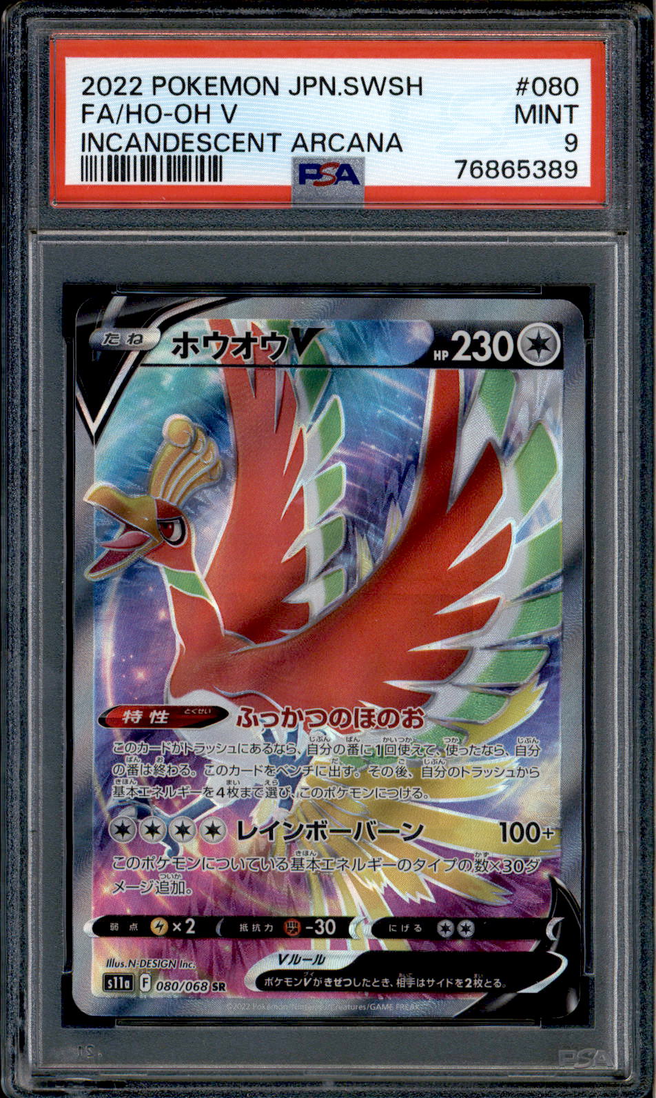 Ho-oh V – 080/068 – PSA 9 – SR – Full Art – Incandescent Arcana – Pokemon – 65389