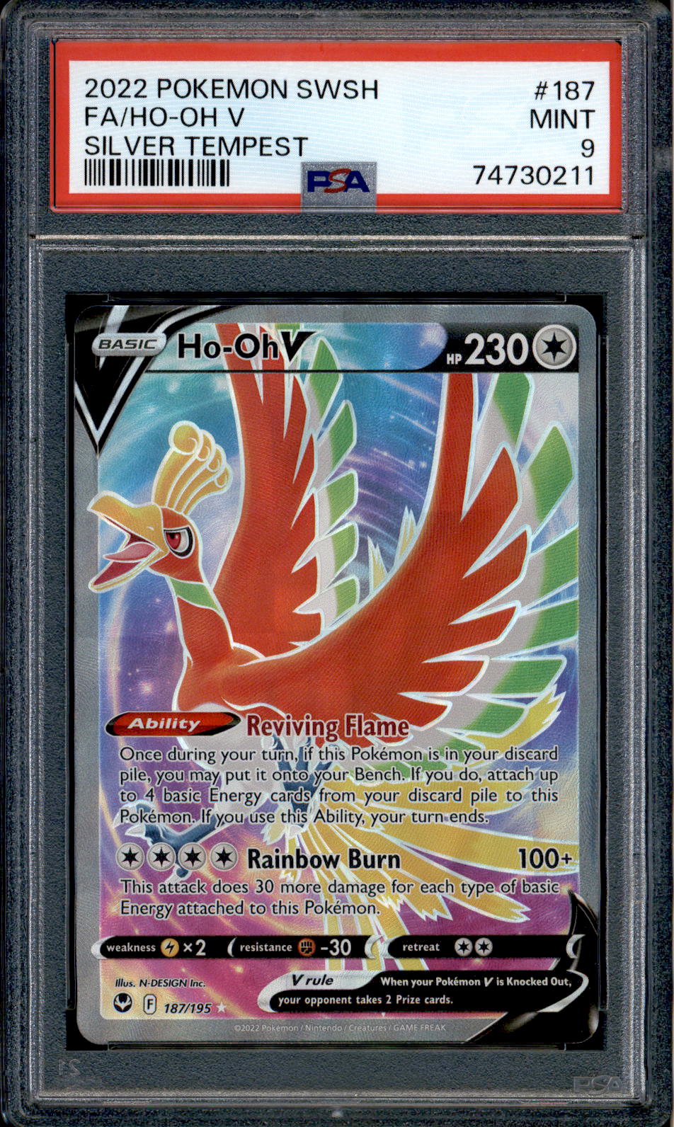 Ho-oh V – 187/195 – PSA 9 – Full Art – Silver Tempest – Pokemon – 30211