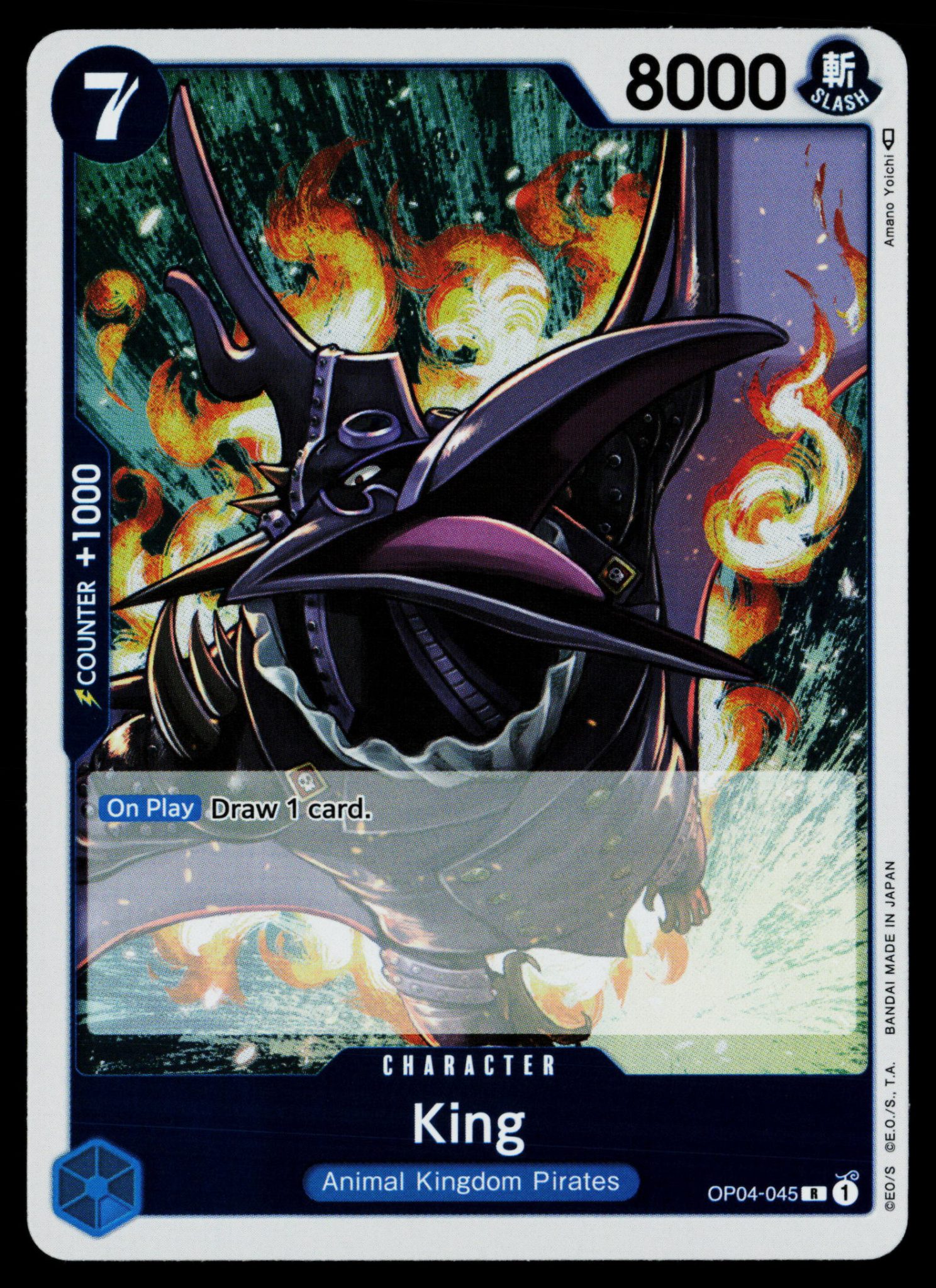 Get yourself this, King – OP04-045 – NM – Rare – English OP04 – One Piece TCG, an amazing raw near mint card at an affordbale price.