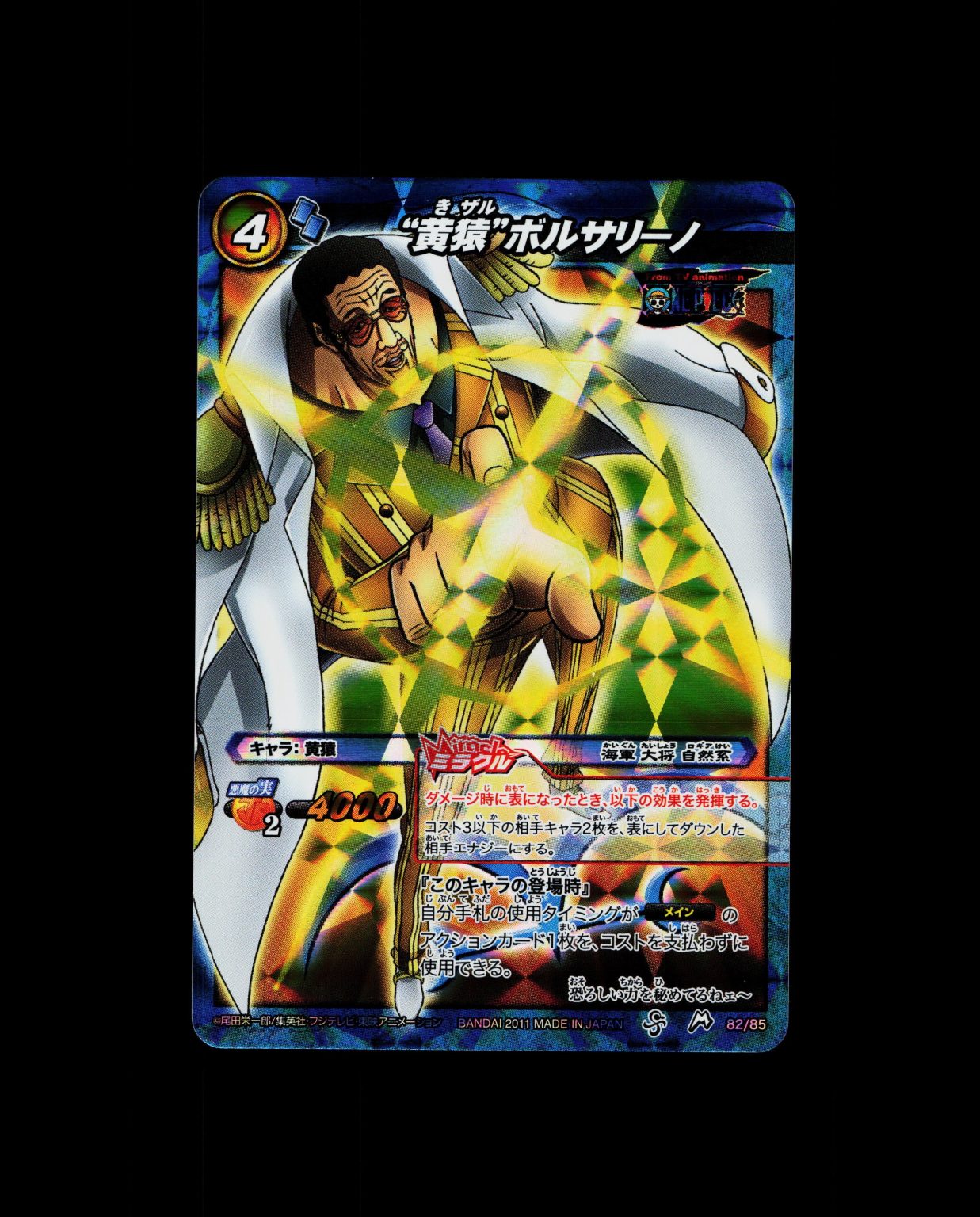 Get yourself this, Kizaru – 82/85 – NM – Miracle Rare – Miracle Battle Carddass – One Piece – E2-164, an amazing raw near mint card at an affordbale price.