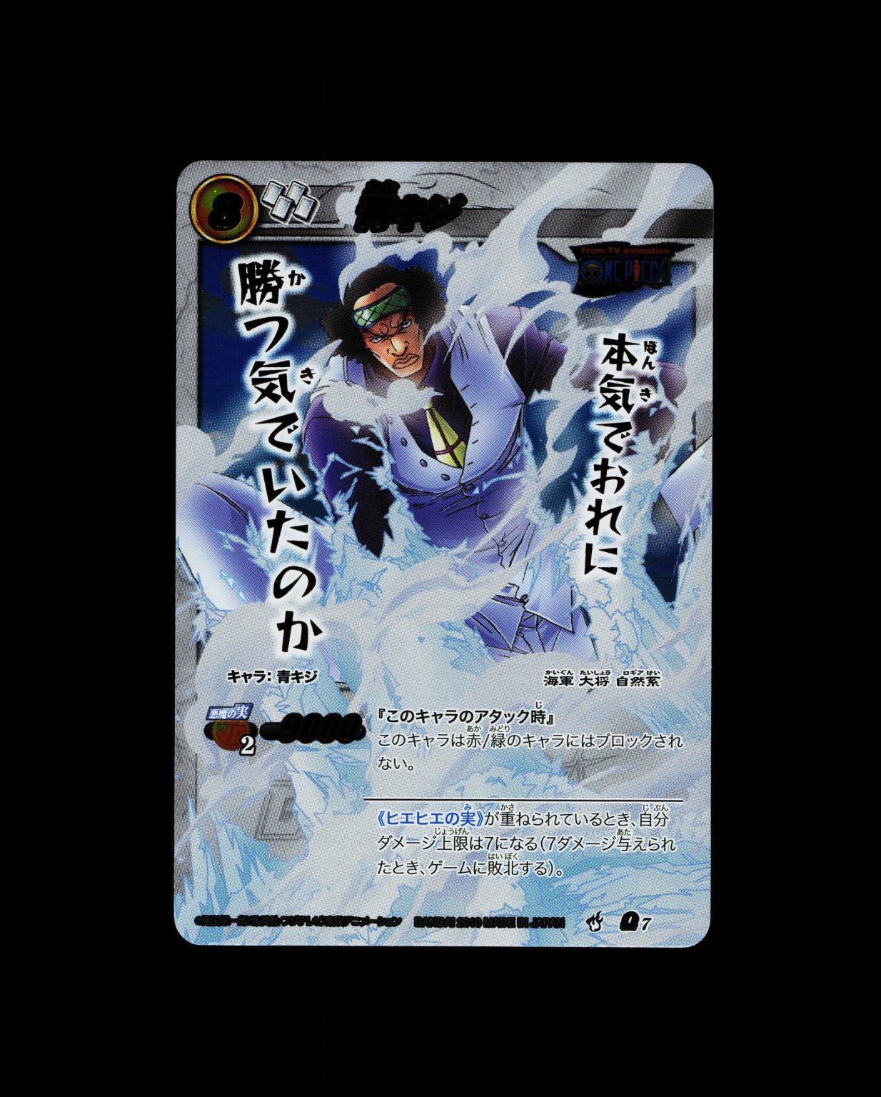 Get yourself this, Kuzan Aokiji – 7 – NM – Omega Rare – Miracle Battle Carddass – One Piece – E2-118, an amazing raw near mint card at an affordbale price.