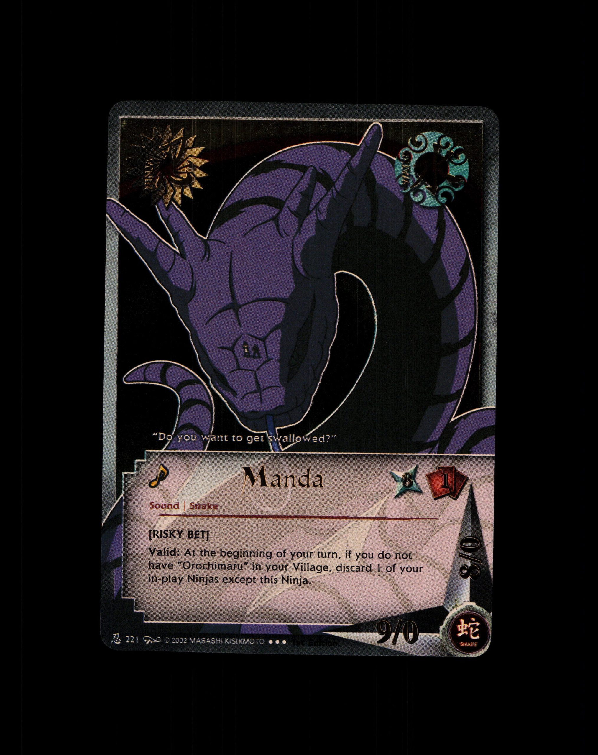 Get yourself this, Manda – 221 – NM – 1st Edition – Foil – Naruto CCG – D4-263, an amazing raw near mint card at an affordbale price.