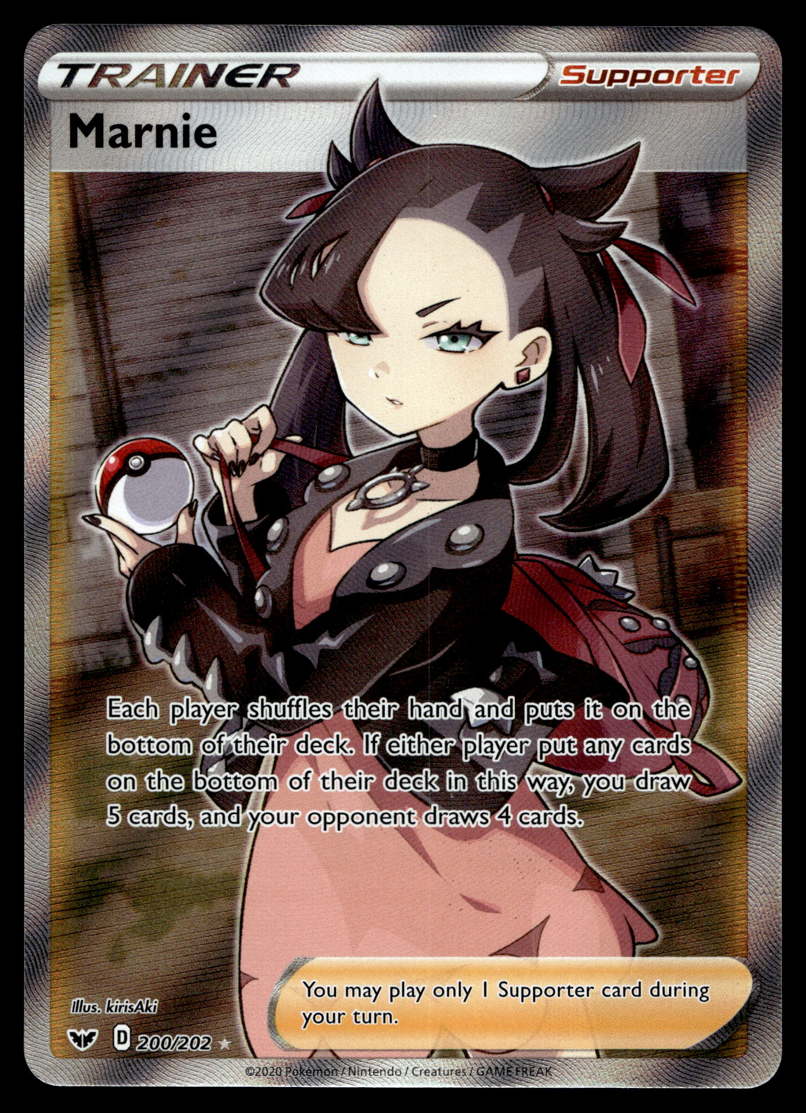 Get yourself this, Marnie – 200/202 – NM – Full Art – Sword & Shield – Pokemon – C3-28, an amazing raw near mint card at an affordbale price.