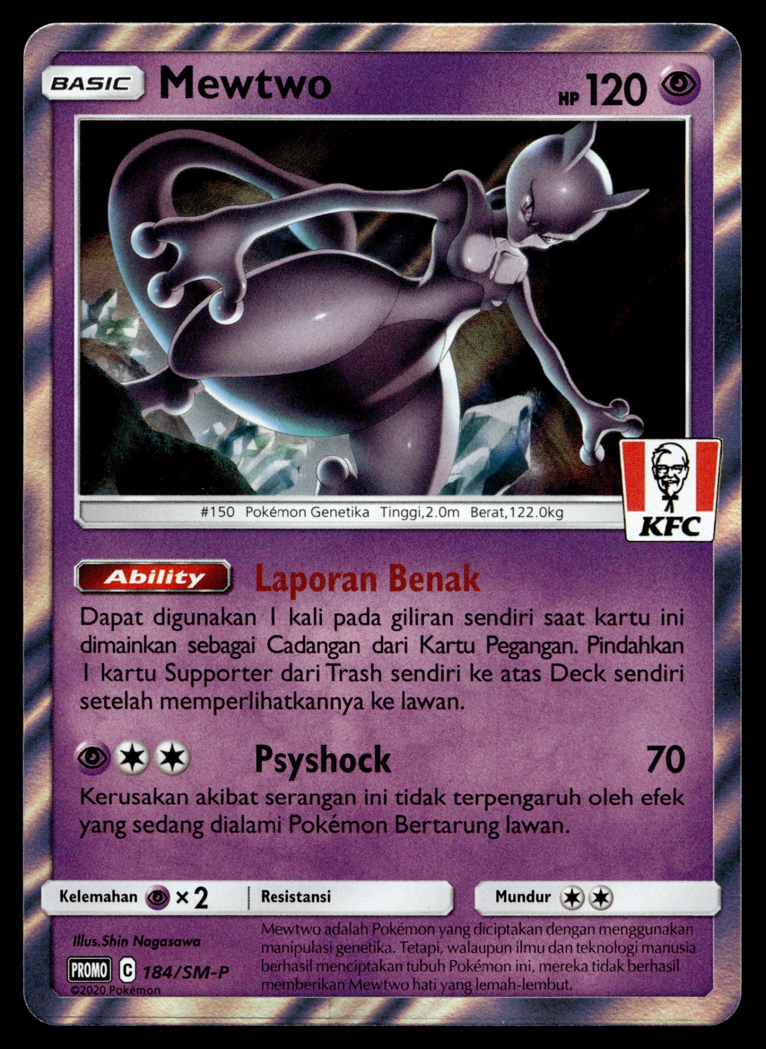 Get yourself this, Mewtwo – 184/SM-P – NM – Indonesian KFC – Promo – Pokemon – B1-27, an amazing raw near mint card at an affordbale price.