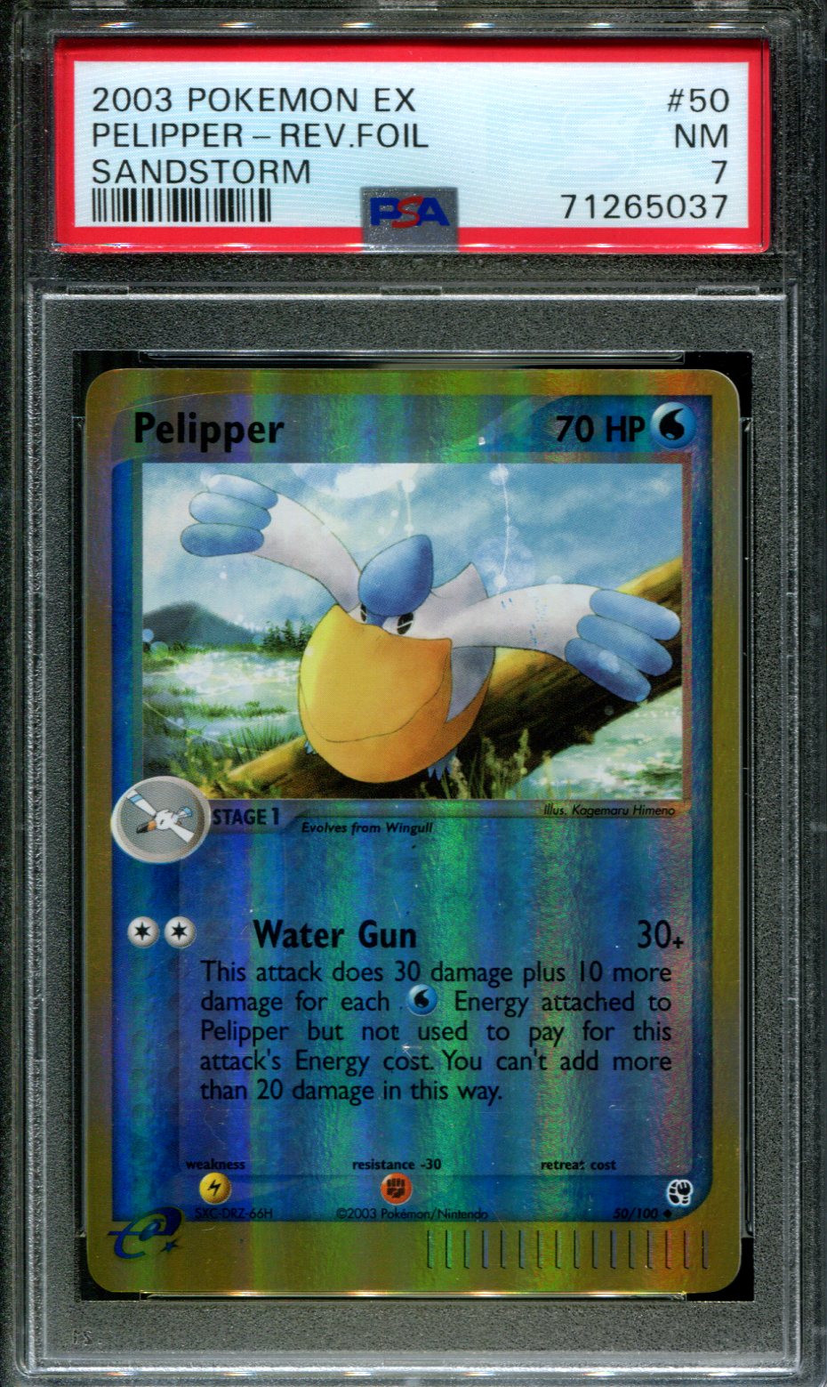 Get yourself this, Pelipper – 50/100 – PSA 7 – Reverse Holo – Sandstorm – Pokemon – 65037, an amazing PSA Graded card at an affordbale price. PSA is a