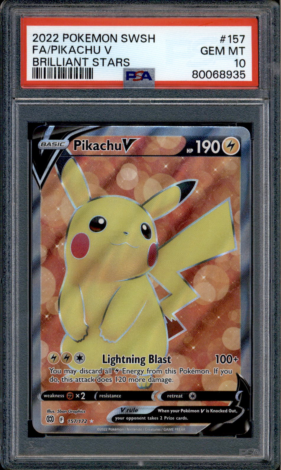 Pikachu V – 157/172 – PSA 10 – Full Art – Brilliant Stars – Pokemon – 68935