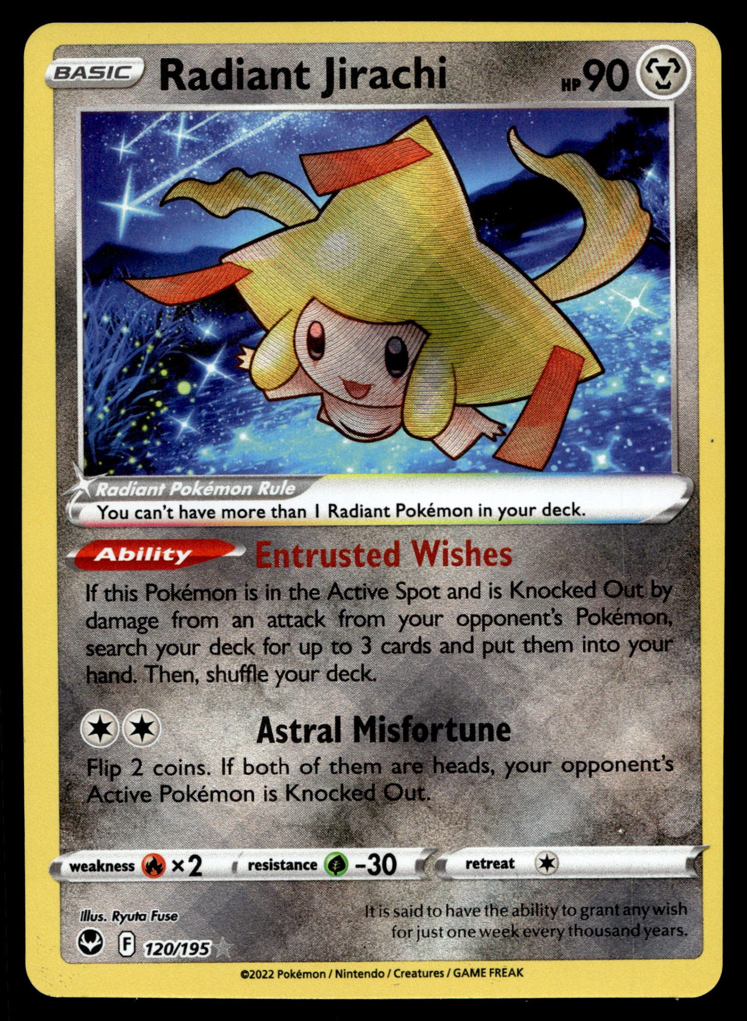Get yourself this, Radiant Jirachi – 120/195 – NM – Radiant Rare – Silver Tempest – Pokemon – C4-1, an amazing raw near mint card at an affordbale price.