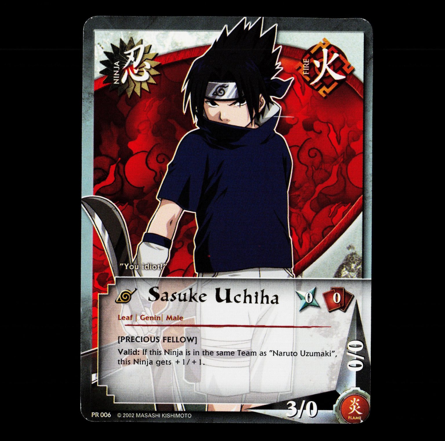 Get yourself this, Sasuke Uchiha – PR 006 – NM – Rare – Promo – Naruto CCG – E1-38, an amazing raw near mint card at an affordbale price.