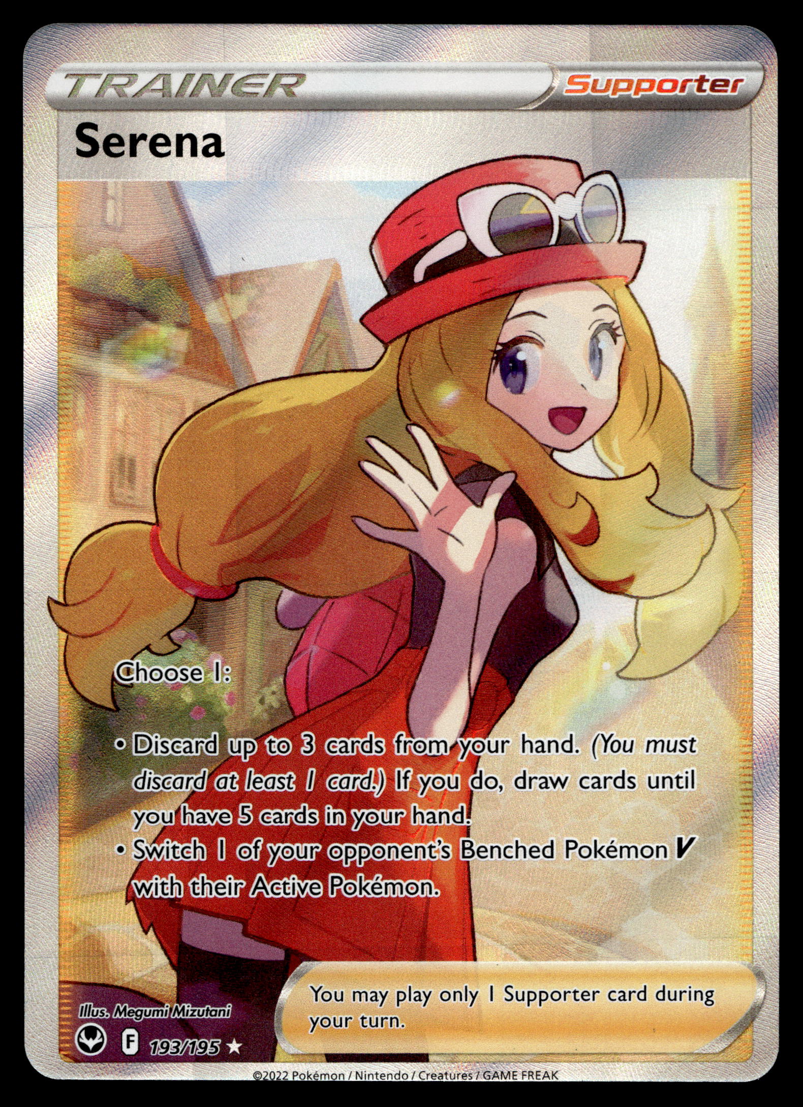 Get yourself this, Serena – 193/199 – NM – Full Art – Silver Tempest – Pokemon – A5-6, an amazing raw near mint card at an affordbale price.