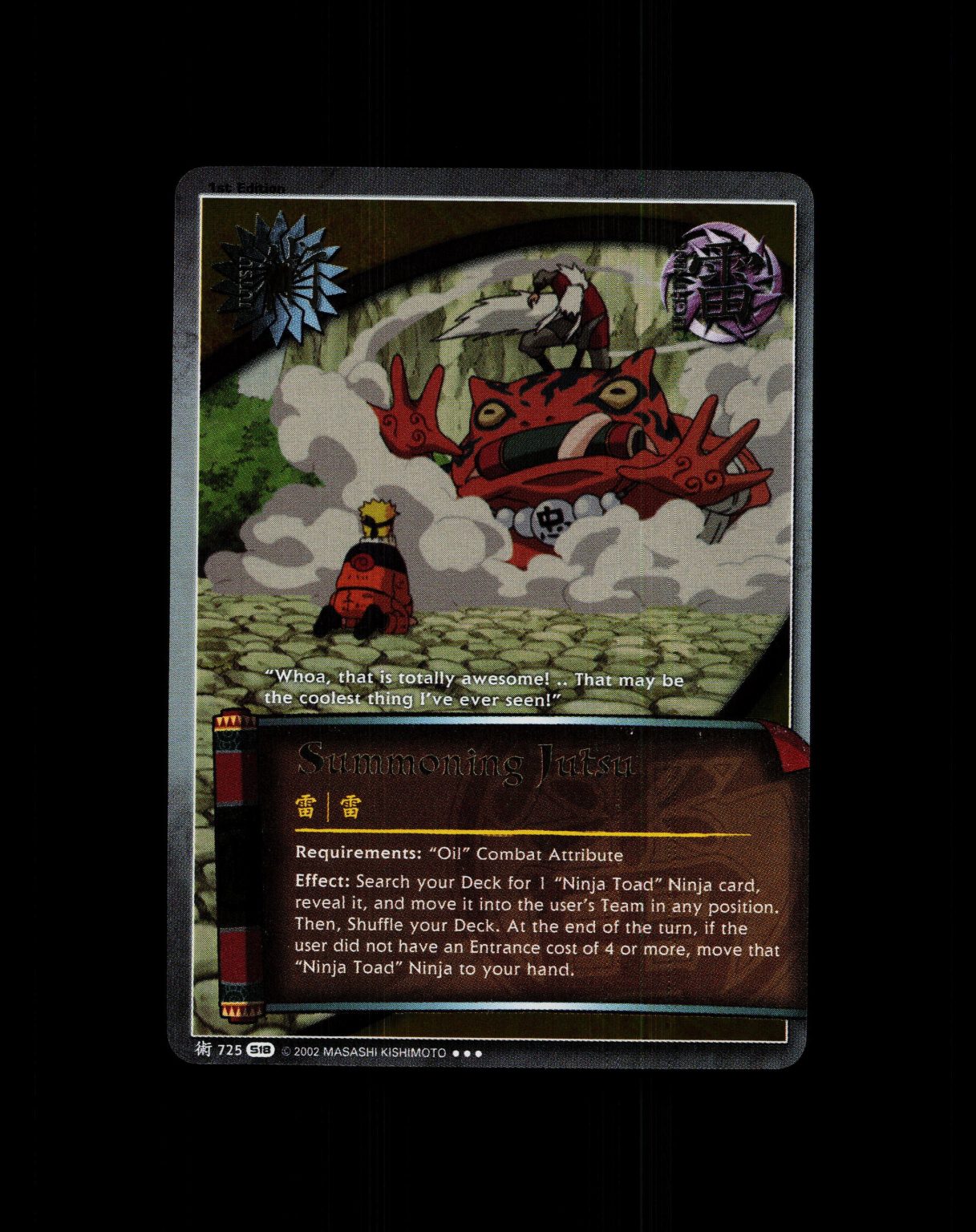 Get yourself this, Summoning Jutsu – 725 – NM – 1st Edition Foil – S18 – Naruto CCG – D4-112, an amazing raw near mint card at an affordbale price.